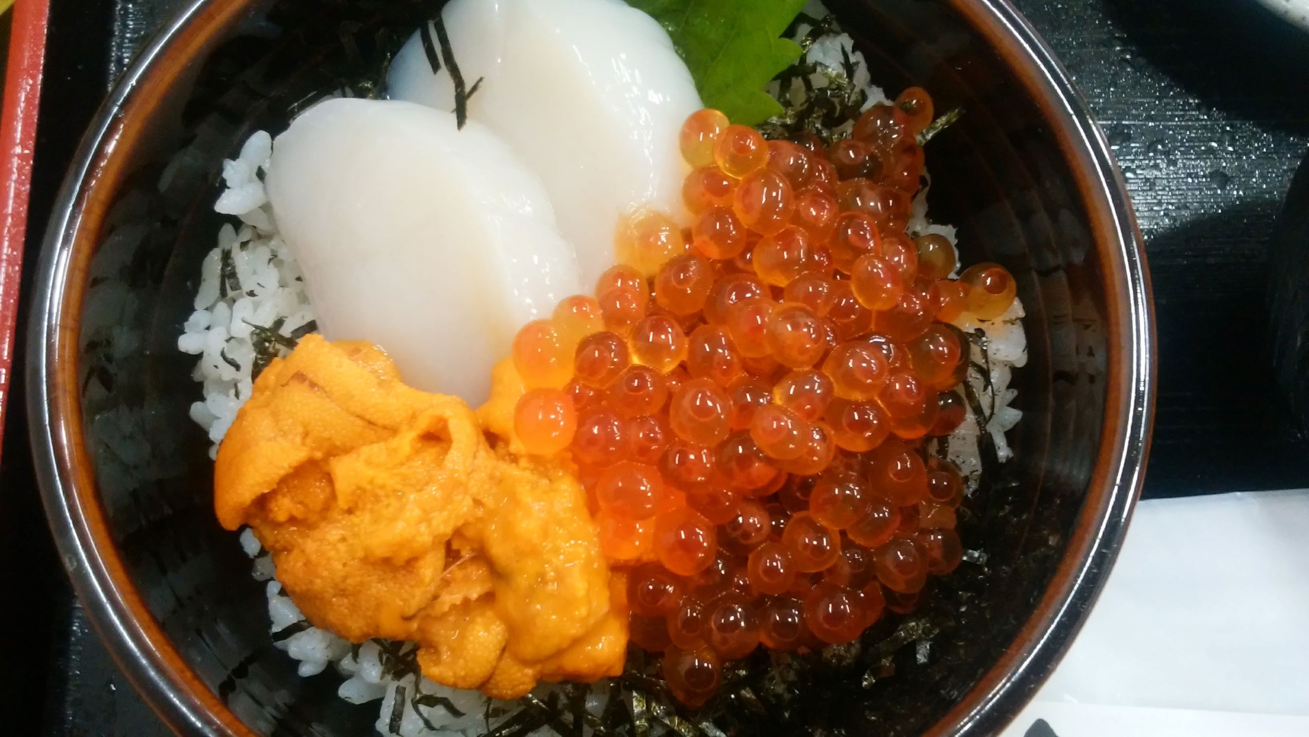 Kaisendon, uova di salmone, ricci di mare, capesante