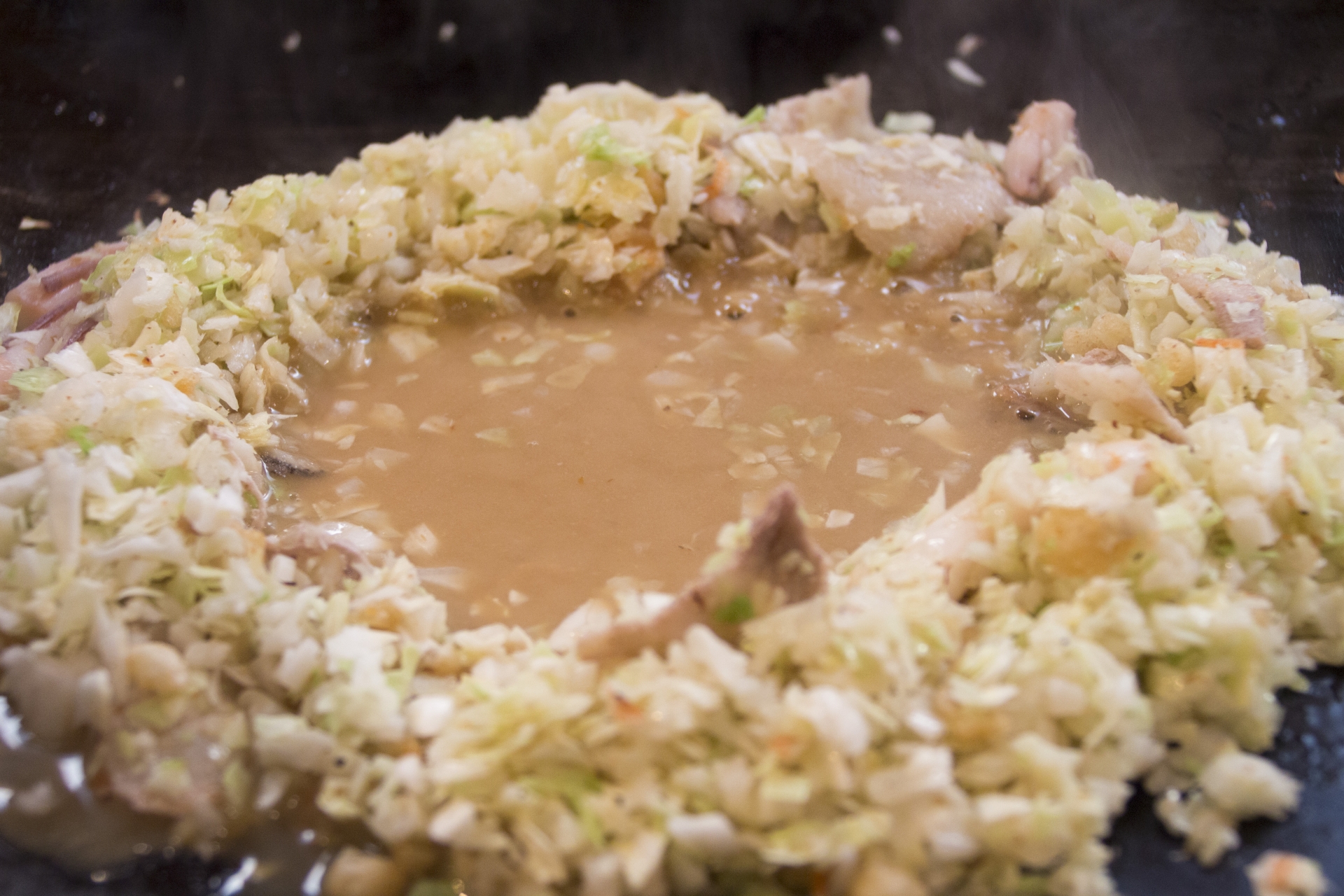 Monja yaki è la specialità di Tokyo. Gli ingredienti sono più o meno gli stessi