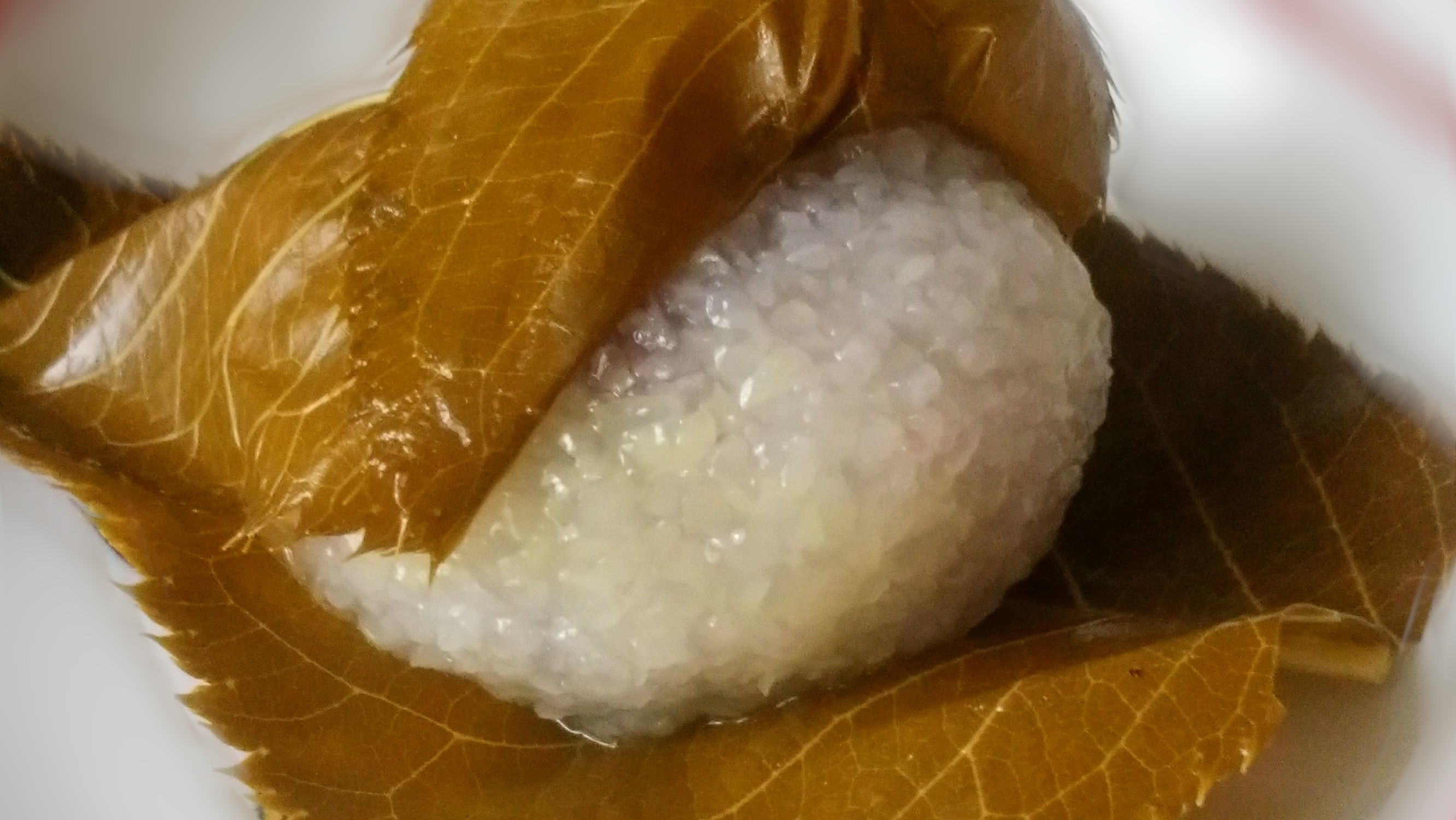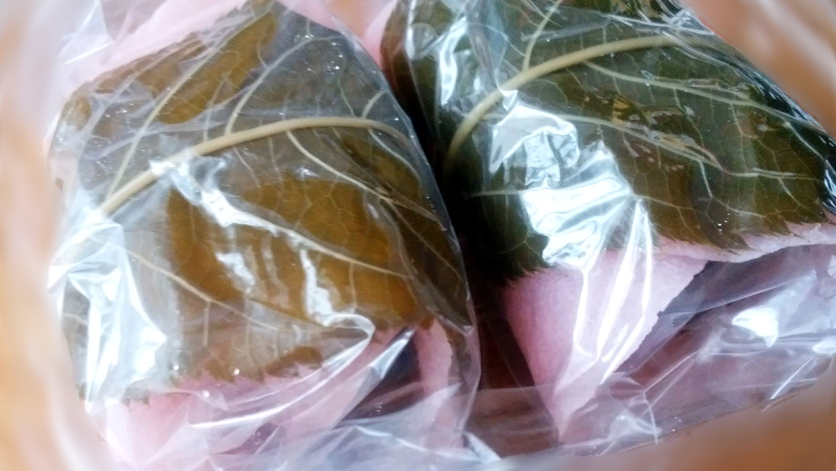 mochi, avvolto in una foglia di ciliegio) preparati a marzo e